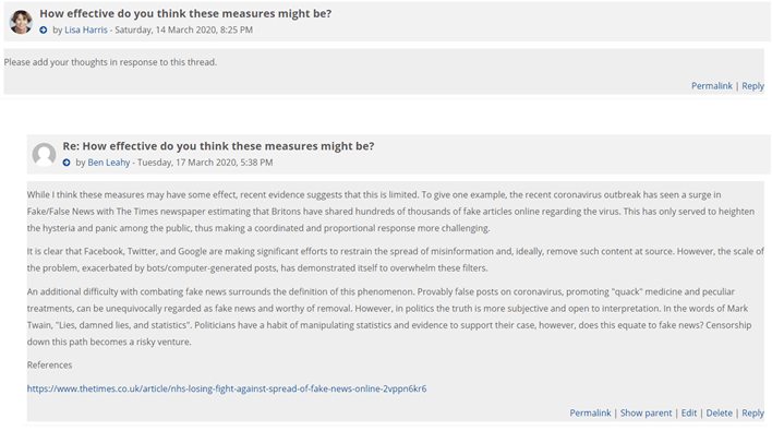 It was good to read the thoughts of others on internet access inequalities and the rise of fake news as well as strategies to tackle these. The latter was particularly pertinent given the wave of disinformation online surrounding the current coronavirus pandemic.